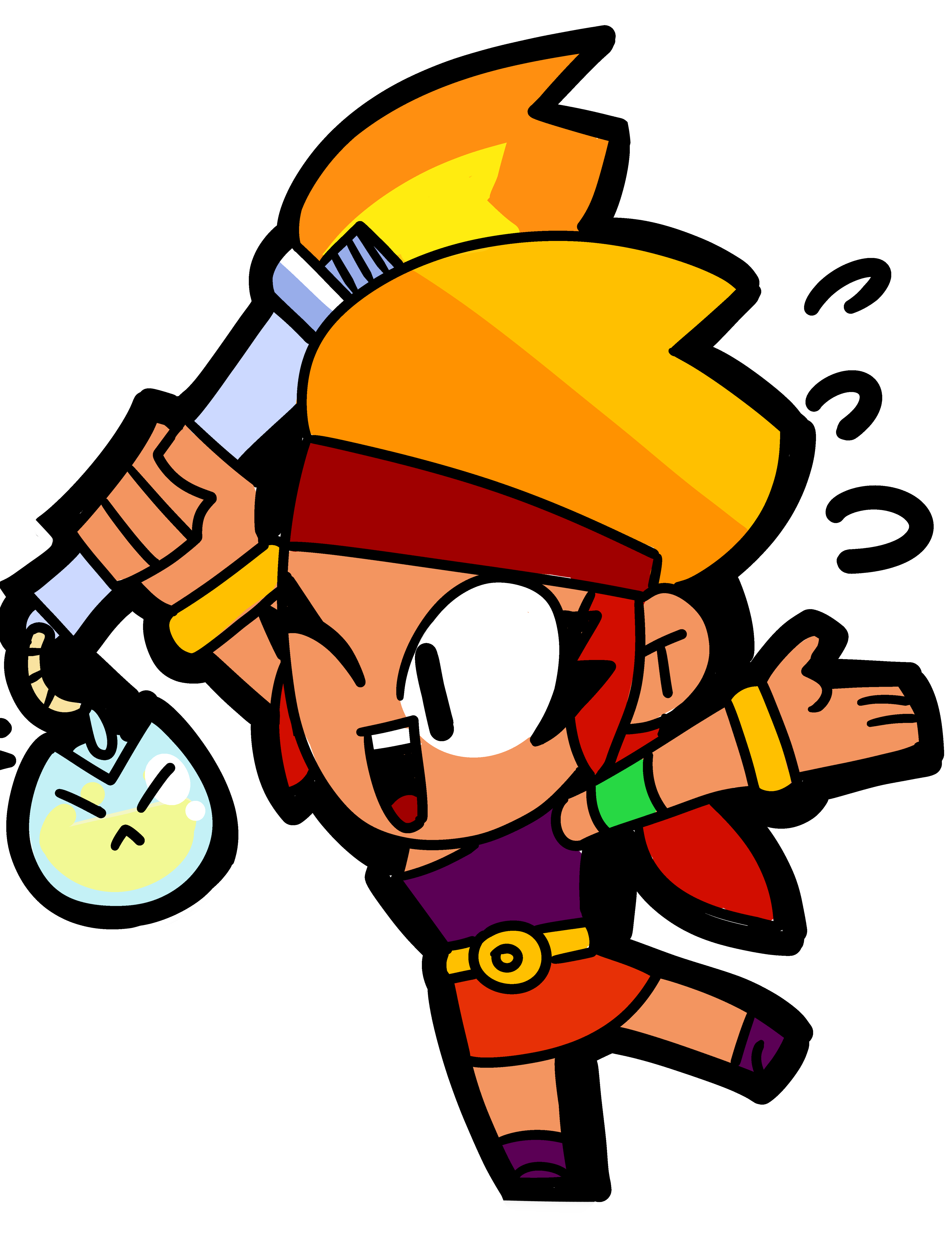 "He's a Protector with a penchant for parties. Surge attacks foes with energy drink blasts that split in 2 on contact. His Super upgrades his stats in 3 stages and comes complete with totally awesome body mods!"